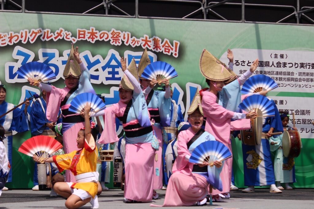 ふるさと全国県人会まつりが名古屋市の久屋大通公園で開催され、秋晴れの空のもと、鯱ほこ連は9月7日(日)にステージで踊りました。